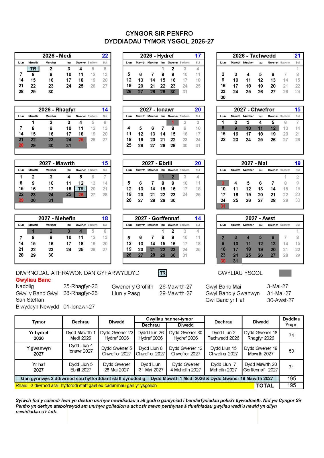 Bydd ein diwrnodau Hyfforddiant Mewn Swydd lle na fydd yr ysgol ar agor i ddisgyblion yn ystod y flwyddyn academaidd 2025-26 ar: